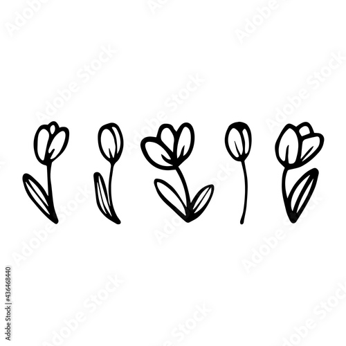 Fototapeta premium Hand-drawn flowers. Tulip in doodle style. Botanical set for gift-cards, web,...