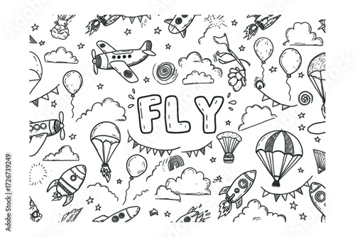 © Sophia, Obraz premium Hand drawn fly pattern. . Vector illustration