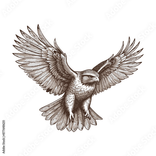 © ImageryPlanet, Obraz premium Hand Drawn Flying Hawk Vector Illustration
