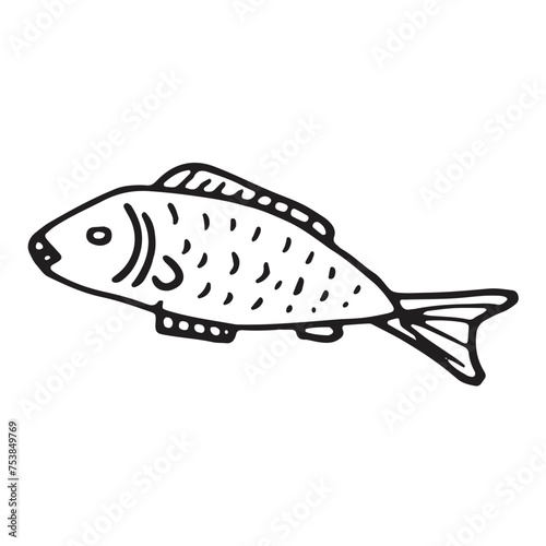 © NAMOY, Fototapeta premium Hand drawn food icons and elements pattern. Digital illustration. collection of doodles of healthy food ingredients isolated on white background
