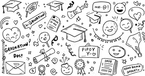Obraz premium Hand-Drawn Graduation Doodles: Celebration, Memories Joyful Moments