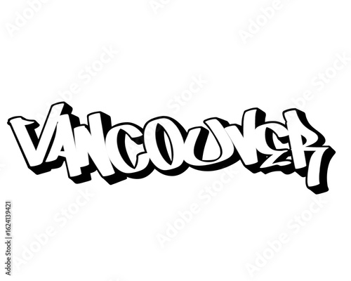 © frawwws, Obraz premium hand drawn graffiti calligraphy letters VANCOUVER city name isolated design in black and white