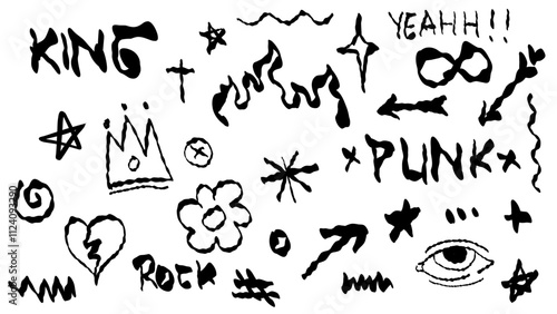 © Yuhan_0001, Naklejka premium Hand drawn graffiti collection set. Vector illustration