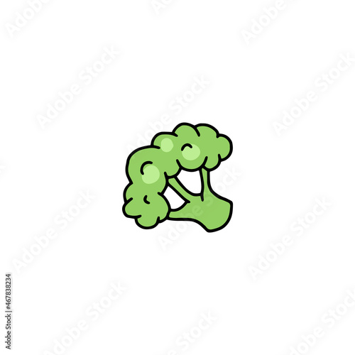 © sabelskaya, Naklejka premium Hand drawn green broccoli piece, sketch colored vector illustration isolated.