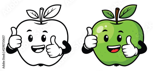 © RABBI, Obraz premium Hand drawn green Thumbs up Apple vector Clipart Illustration with a white background