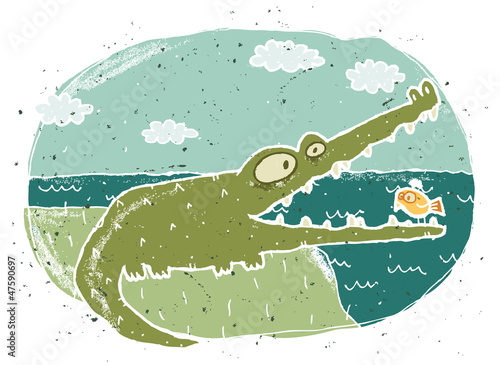 Obraz premium Hand drawn grunge illustration of cute crocodile