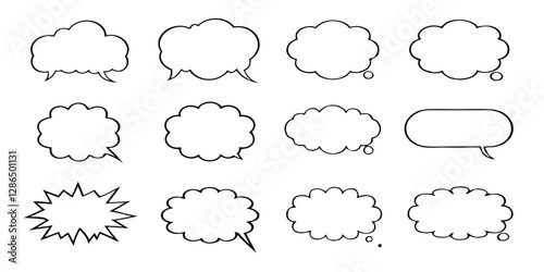Fototapeta premium Hand-Drawn Grunge Speech Bubbles: Charcoal Chalk Doodle Vector Set