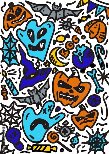 Fototapeta premium Hand drawn Happy Halloween doodle. Cute halloween icons, Happy Halloween...