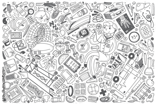 © Dzianis Vasilyeu, Fototapeta premium Hand drawn health set doodle vector background