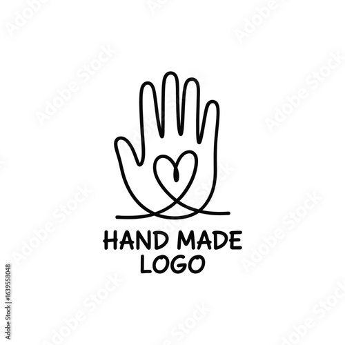 Obraz premium Hand drawn heart and hand logo for handmade businesses