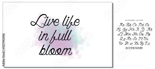 © AriefIndra, Naklejka premium Hand drawn holiday lettering. Ink illustration. Modern brush calligraphy. Isolated on white background. Live life in full bloom.