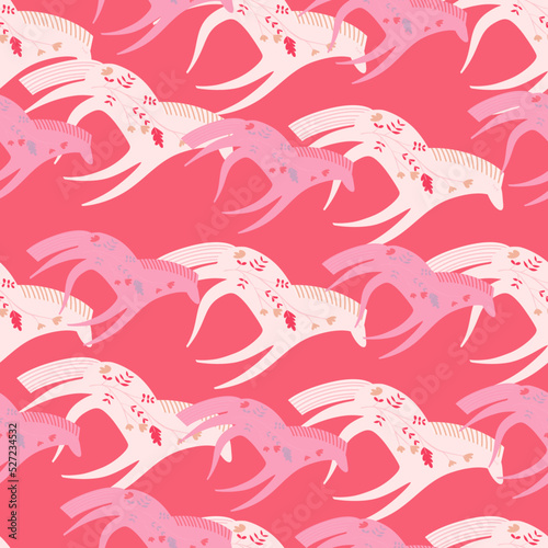 Naklejka premium Hand drawn horse seamless pattern. Cute cartoon wallpaper with wild flower and stylized animals.