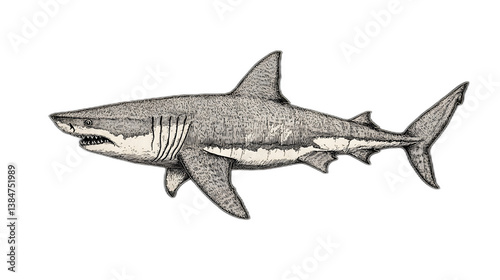 © Thanadech, Naklejka premium Hand-drawn illustration of a shark placed against a solid black background