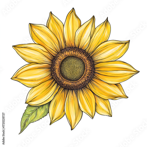 Fototapeta premium Hand-Drawn Illustration of a Sunflower with Rich Yellow Petals and a Detailed Brown Center, Capturing the Beauty of Nature