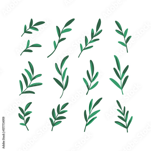 © Lili Kudrili, Fototapeta premium Hand drawn illustration of green leaves. Boho element for your design. Abstract poster with minimalist leaves.