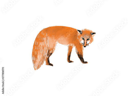 Naklejka premium Hand drawn illustration of walking fox isolated on white background. Cute...
