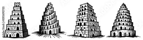 Fototapeta premium hand-drawn illustrations of ancient tower structures with unique designs