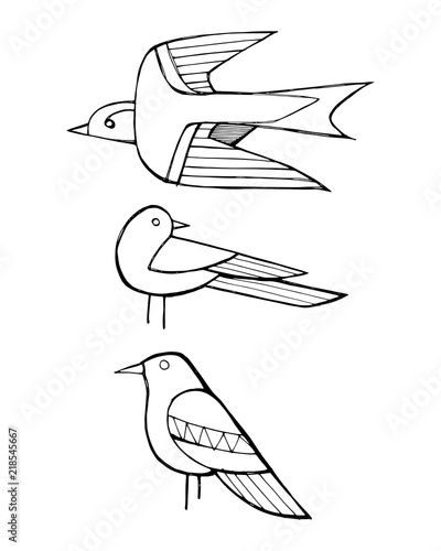 © bernardojbp, Naklejka premium Hand drawn ink birds illustration