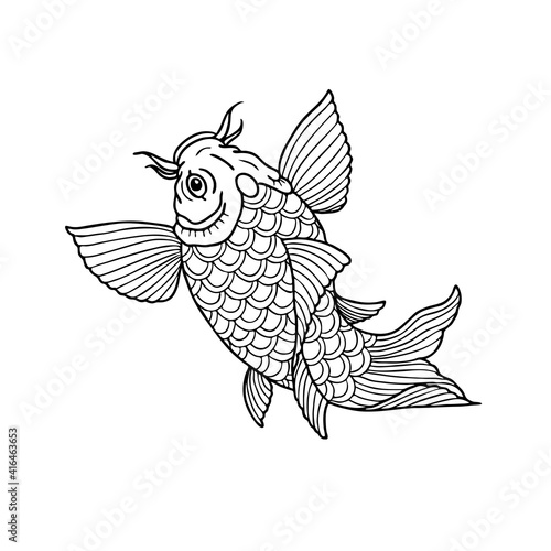 Fototapeta premium Hand drawn koi fish, linear illustration, contour drawing. Japanese tattoo. Isolated on white background. Vector illustration.