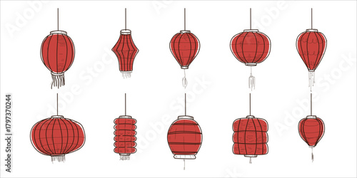 © Irvan, Fototapeta premium Hand Drawn Lampion Lunar New Year