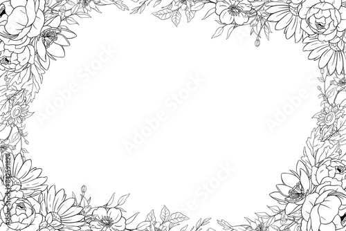 © andika96, Fototapeta premium Hand Drawn Leaf and Flower Frame Background. Suitable for Wedding Invitation and Card