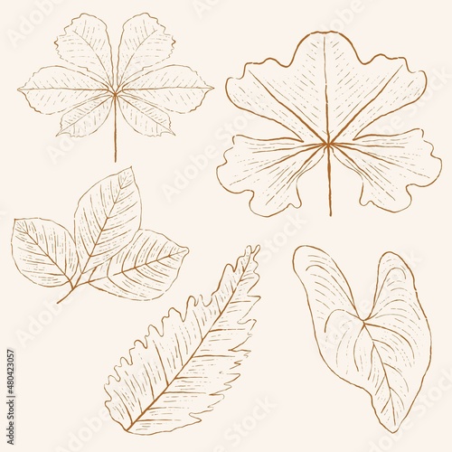 © Rachmattt, Fototapeta premium hand drawn leaf line art, hand drawn nature painting. Free hand sketch illustration.