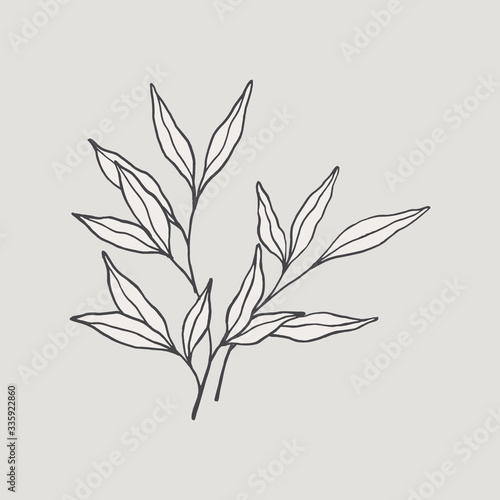 © flowersonthemoon, Fototapeta premium Hand drawn leaves arrangement. Vector botanical illustration, floral brush sketches