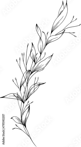 Naklejka premium Hand drawn Leaves on a single branch with buds