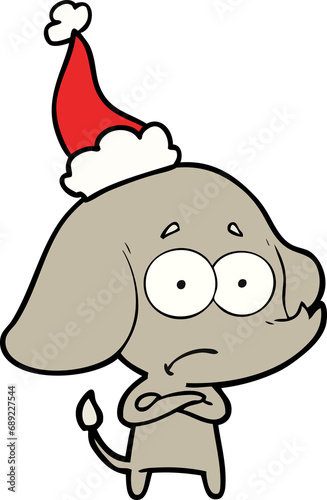 Obraz premium hand drawn line drawing of a unsure elephant wearing santa hat