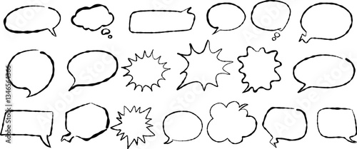 © Kakigori Studio, Obraz premium Hand drawn marker speech bubble doodle vector collection. Cartoon icon symbols isolated on white background
