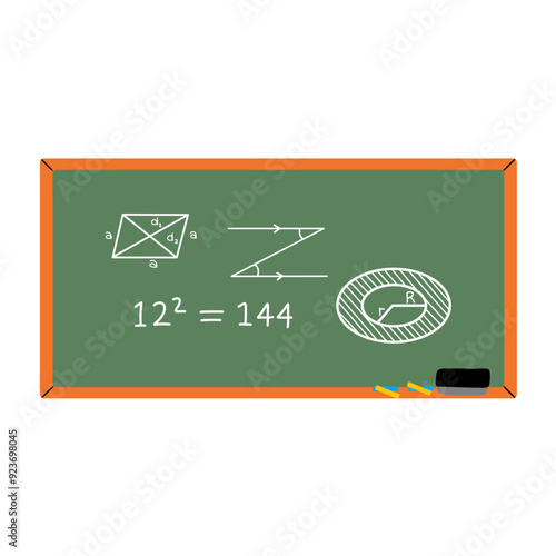© King Silhouette, Obraz premium Hand drawn math signs on chalk board. Graphic and formula, mathematical, geometric or physic doodle on blackboard, neoteric vector symbols