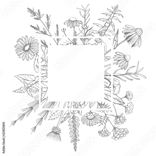 Obraz premium Hand drawn medicinal herbs.Vector frame