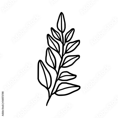 Fototapeta premium Hand drawn monochrome plant, leaf, and foliage element for wedding invitation, logo, symbol, greeting cards, decor, botanical icon, or banner. Summer, spring, and autumn botany element