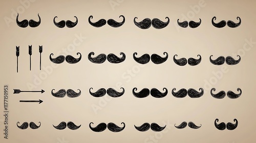 Fototapeta premium Hand-drawn mustache & arrow design elements on beige.