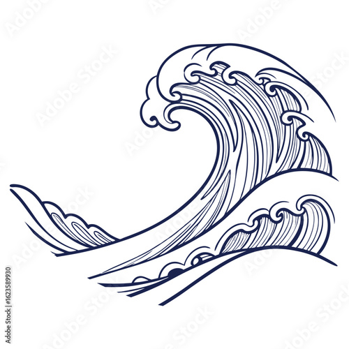 Obraz premium Hand Drawn Ocean Wave Line Art