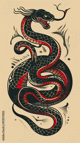 © CREATIVE STOCK, Obraz premium Hand drawn old school tattoo isolated icon of Snake vector image set