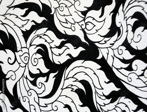 Obraz premium hand drawn original impressionism art painting thai kranok pattern ancient...