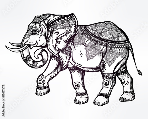 Obraz premium Hand drawn ornate elephant illustration.