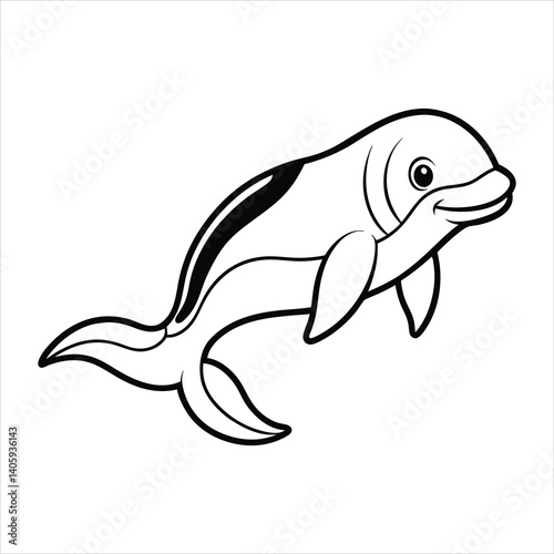 © Mofajjol, Obraz premium Hand-Drawn Outline Illustration of a Playful Smiling Dolphin Character