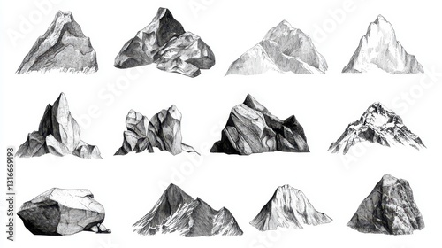 © NpicArt, Naklejka premium Hand drawn pencil sketches illustrating varying mountain and rock formations