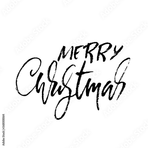 Obraz premium Hand drawn phrase Merry Christmas. Grunge lettering design. Vector typography...