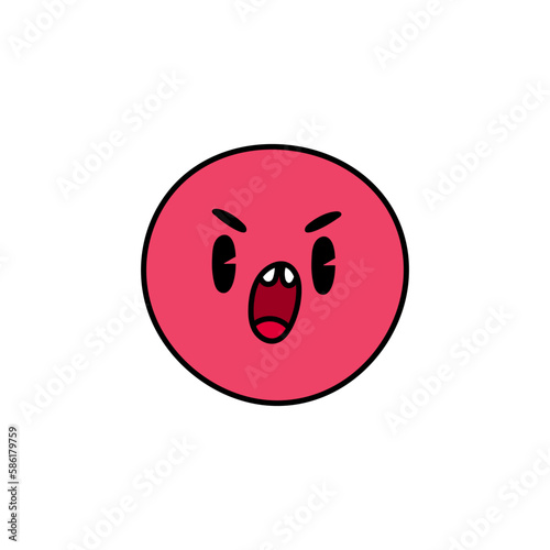 Fototapeta premium Hand drawn pink circle doodle isolated on white background. 70s style character, cute kawaii figures.