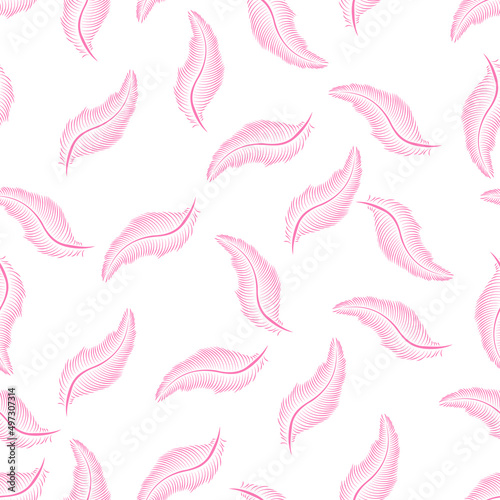 Fototapeta premium Hand drawn Pink Feather Seamless pattern. Repeatable illustration isolated on...