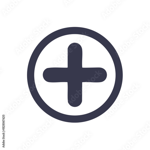 © FryArt, Obraz premium Hand drawn plus sign inside a circle graphic icon for addition or new item