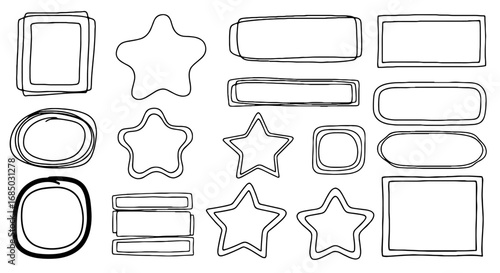 © Ankit, Obraz premium Hand drawn rectangle square star circle frame outline vector graphic design art illustration set