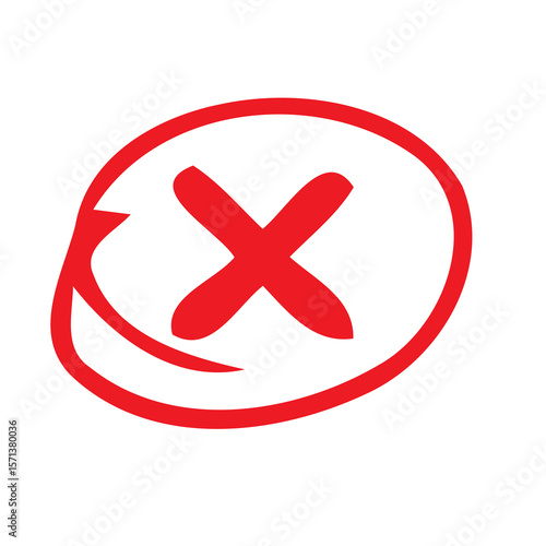 © Noy, Fototapeta premium Hand-Drawn Red Cross Mark in Circle Vector