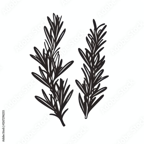 Fototapeta premium Hand drawn Rosemary Sprigs Culinary Herb Black and White Illustration Botanical Line Art Kitchen