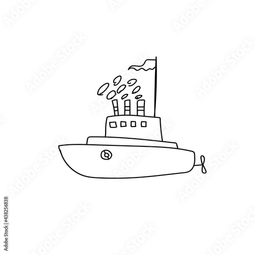Fototapeta premium Hand drawn sailing ship on the waves. Doodle boat. Children drawing. Isolated...