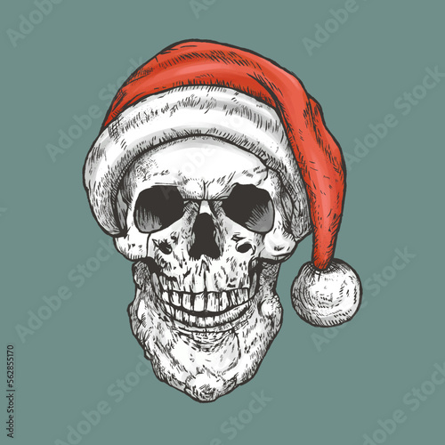© esa, Naklejka premium Hand drawn Santa Claus skull. Vector illustration