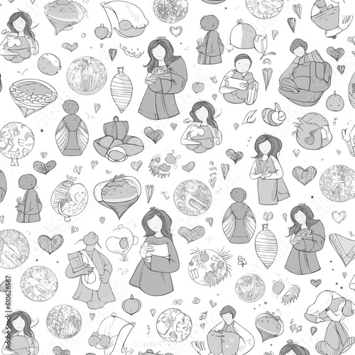 © Salauddin, Fototapeta premium hand drawn seamless background with caring in winter art pregnancy pattern